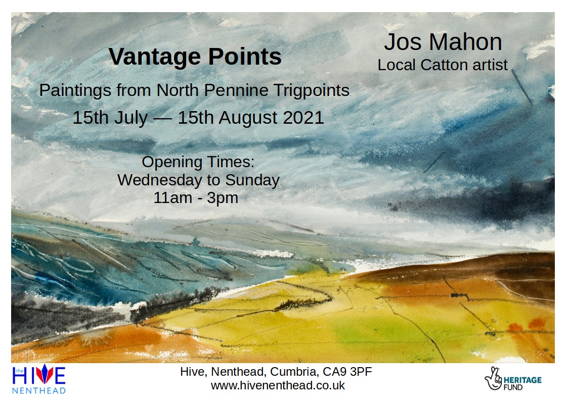 The paintings selected for this exhibition, are painted from trig points on nearby hills and moors around Alston, Nenthead, Weardale and Upper Teesdale.